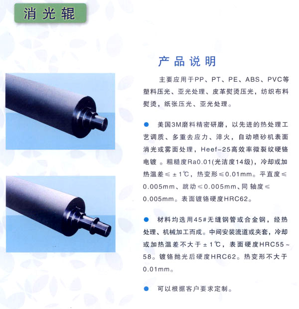 常州市武進區(qū)禮嘉鎮(zhèn)萬超機械有限公司專業(yè)生產(chǎn)、加工花輥、鏡面輥、無紡布設備,及各類機械配件。產(chǎn)品廣泛應用于金屬、塑料、皮革、紙張、玻璃、木材、無紡布、衛(wèi)生材料、包裝裝潢等行業(yè)。 公司經(jīng)營方針:服務鍥而不舍 品質力臻卓越。得到國內眾多客戶的厚愛與好評。 歡迎各界朋友蒞臨常州萬超機械有限公司指導和業(yè)務洽談。 萬超為顧客免費打樣、并代客壓紋!