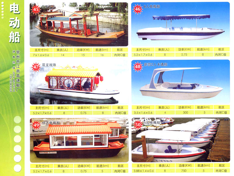 隨著人民生活的提高和水上旅游業(yè)的不斷發(fā)展,原有的游艇已遠不能滿足人民群眾不斷提高的需求。為適應水上旅游業(yè)市場的變 化,我廠開發(fā)研制了符合中國國情、具有民族特色的仿古畫舫游艇及國際最新流行款式一城市旅游休閑觀光艇。特別近兩年又開發(fā)了一批精品畫舫船投放市場之后深受景區(qū)的歡迎。今年我廠又開發(fā)了適用少數(shù)民族的“風雨橋”、“寨門”畫舫艇。在湖南、廣西、云南、貴州深受愛戴。此艇別具風格,民族風情特別濃厚。侗鄉(xiāng)一號計劃在2006年5月1日投放在貴州黎平侗鄉(xiāng)風景區(qū)八舟河景區(qū)使有(風序號)。我廠歡迎用戶來圖加工,來廠考察訂貨,畫舫艇款式多多,終有一款適合你。歡迎來電來函垂詢。索樣即寄。誠心銷售、人情化服務(wù)、企業(yè)文化、精品畫舫。