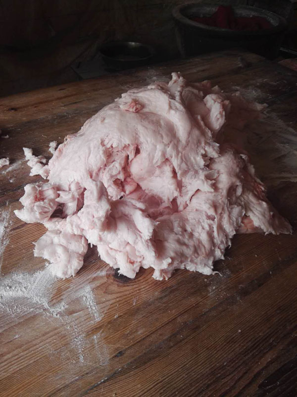 常州大麻糕已經(jīng)有150多年的歷史,常武各地的麻糕師傅、麻糕店數(shù)不勝數(shù),但今天小編要帶大家去的是一家隱藏在背街小巷里,至今仍保持著傳統(tǒng)手工制法的麻糕店。 沈正昌麻糕店位于遙觀鎮(zhèn)東街、國(guó)寧寺旁,雖然店門口連個(gè)招牌都沒有,卻不妨礙四面八方的食客慕名而來(lái),大伙看中的正是這些純手工制作,原汁原味的大麻糕。如今的店主沈國(guó)平已經(jīng)是沈家第四代做麻糕的傳人了。 秉承著爺爺那輩傳下來(lái)的手藝,他們制作的麻糕塊大實(shí)誠(chéng),用料講究,口感酥軟,深受四周鄉(xiāng)鄰的歡迎。“我們還是老法,酥是生板油身擦的,餡里也是生板油摻糖,是真的綠色產(chǎn)品,沒有添加劑,沒有防腐劑,也不用甜蜜素,都是真家伙。” 每天凌晨一兩點(diǎn)鐘,沈國(guó)平就要去采買當(dāng)天最新鮮的豬板油,回來(lái)清理干凈,和上面粉攪拌均勻,制成面團(tuán)。麻糕的制作主要由沈國(guó)平妻子和兩個(gè)姊妹來(lái)完成。揉面、搓胚子、配油酥,按餡心、搟均勻,整個(gè)過程行云流水,連貫無(wú)比。 當(dāng)爐火燒得正旺,溫度能高達(dá)近300度,沈國(guó)平就上場(chǎng)了,赤手空拳,一撈一貼,一秒鐘的功夫,就把麻糕貼到了桶壁上。不過幾分鐘的功夫,麻糕就出爐了。經(jīng)過炭火爐子烤出來(lái)的,比一些電烤爐烤出的更香、更脆。